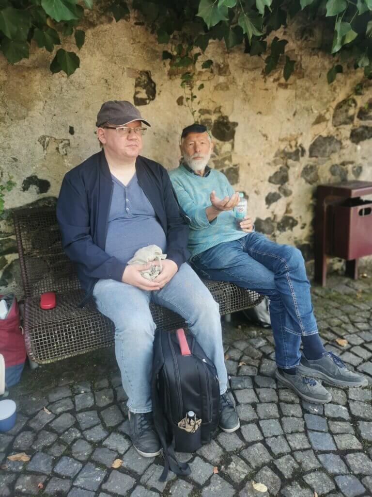 Ingo Thies und Pfarrer Ulrich Thomas genießen die Pause.